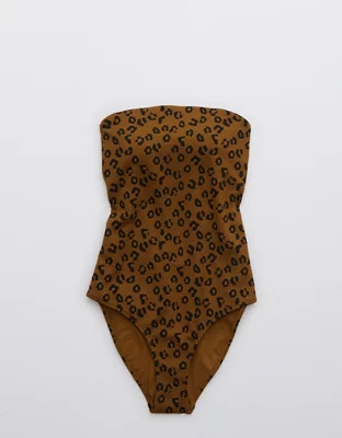 Aerie Leopard Textured Bandeau One Piece Swimsuit