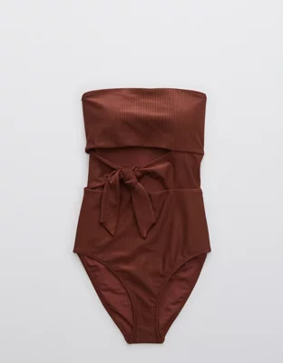 Aerie Ribbed Shine Wrap Strapless One Piece Swimsuit