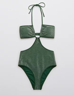 Aerie Shine Cut Out Halter One Piece Swimsuit
