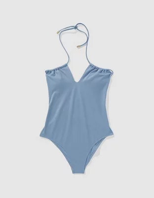 Aerie Shine Pique Cutout One Piece Swimsuit