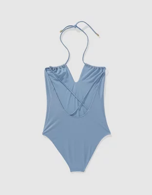 Aerie Shine Pique Cutout One Piece Swimsuit