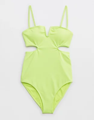 Aerie Shine Pique V Wire Cut Out One Piece Swimsuit