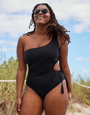 Aerie Tassel Cut Out Asymmetrical One Piece Swimsuit
