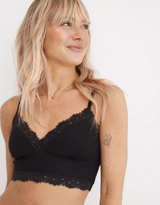 Aerie Ribbed Eyelash Lace Trim Longline Bralette
