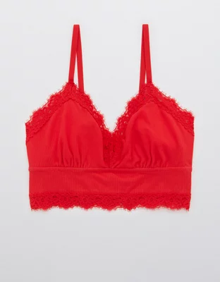 Aerie Ribbed Eyelash Lace Trim Longline Bralette