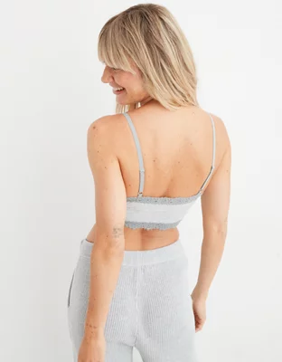 Aerie Ribbed Eyelash Lace Trim Longline Bralette