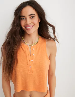 Aerie Sunspun Waffle Cropped Tank Top