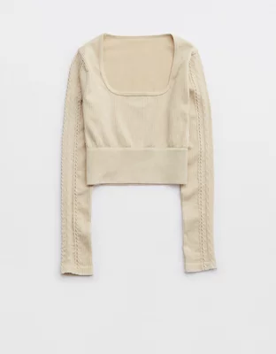 OFFLINE By Aerie Seamless Cable Square Neck T-Shirt