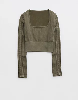 OFFLINE By Aerie Seamless Cable Square Neck T-Shirt