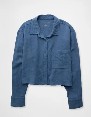 Aerie Good Day Cropped Cover Up Shirt