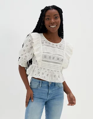 Aerie Ruffle Eyelet Top