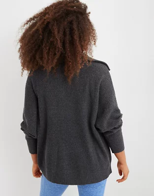 Aerie CozyUp Waffle Quarter Zip Sweater