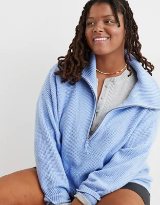 Aerie CozyUp Waffle Quarter Zip Sweater