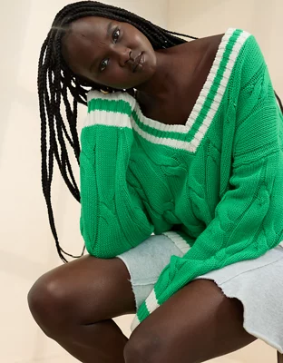 Aerie Cropped Cable V-Neck Sweater