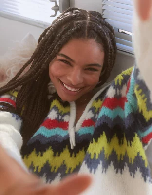 Aerie Fairisle Quarter Zip Sweater