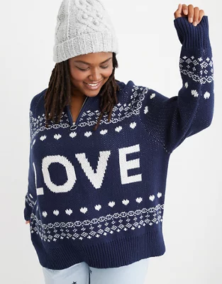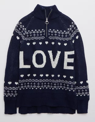 Aerie Festive Feels! Quarter Zip Sweater