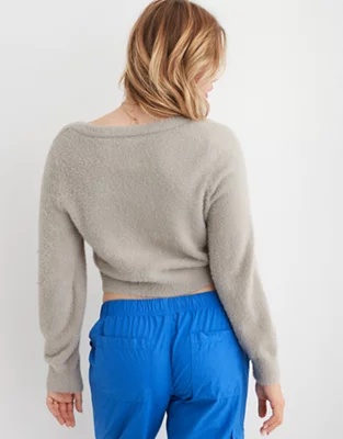 Aerie Fuzzy Cropped Cardigan