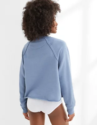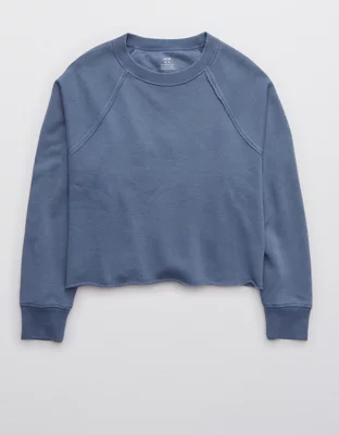 Aerie Fleece-Of-Mind Varsity Cropped Crew Neck Sweatshirt