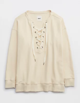Aerie Lace Up Oversized Crew Sweatshirt