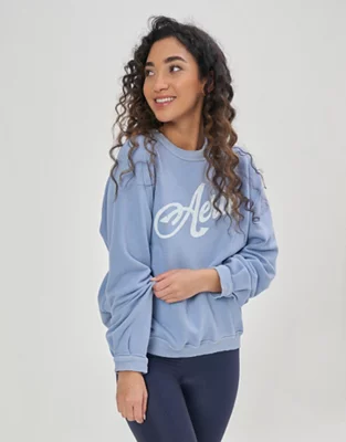Aerie Pleated Sleeve Crew Sweatshirt