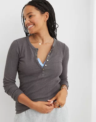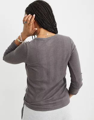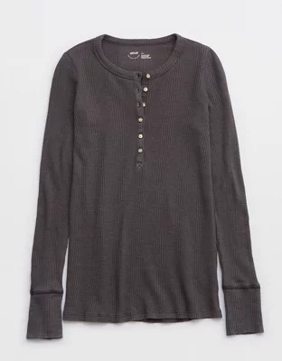 Aerie Waffle Rib Long Sleeve Henley T-Shirt