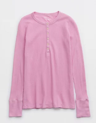 Aerie Waffle Rib Long Sleeve Henley T-Shirt