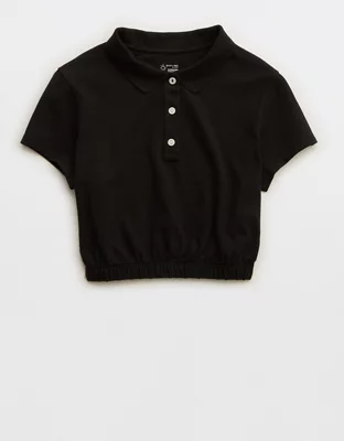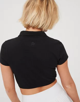 OFFLINE By Aerie Courtside Bubble Hem Cropped Polo T-Shirt
