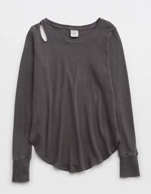 OFFLINE By Aerie Wow! Waffle Cut Out Shoulder T-Shirt