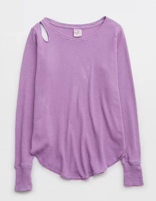 OFFLINE By Aerie Wow! Waffle Cut Out Shoulder T-Shirt