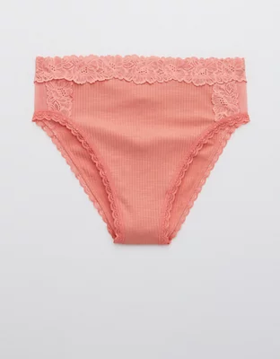 Aerie Cotton Holiday Best Lace High Waisted Mom Underwear