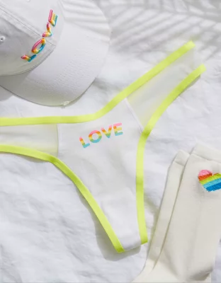 Aerie High Cut Cotton Mesh Thong Underwear