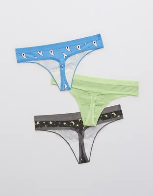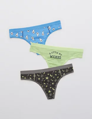 Aerie Cotton Elastic Halloween Thong Underwear 3-Pack