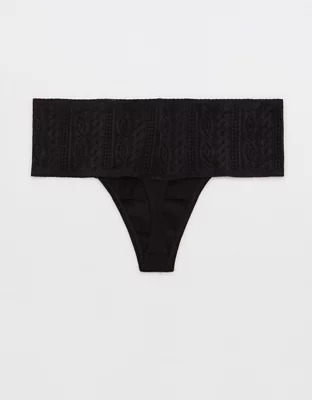 Aerie Cotton Cable Lace Thong Underwear