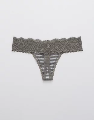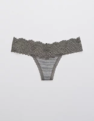 Aerie Cotton Eyelash Lace Striped Thong Underwear