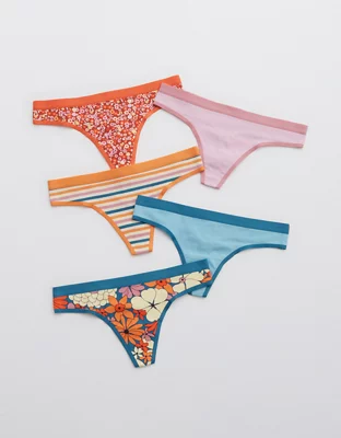 Aerie Cotton FlatElastic Thong Underwear 5-Pack