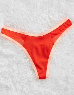 Aerie High Cut Cotton Mesh Thong Underwear