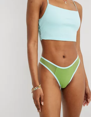 Aerie High Cut Cotton Mesh Thong Underwear