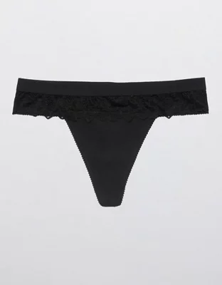 Aerie Snow Angel Lace Cotton Thong Underwear