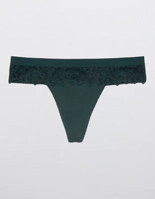 Aerie Snow Angel Lace Cotton Thong Underwear