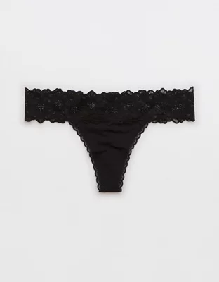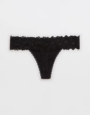 Aerie Snow Angel Lace Shine Thong Underwear