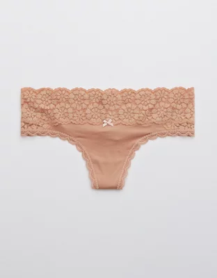 Aerie Sugar Cookie Lace Shine Thong Underwear