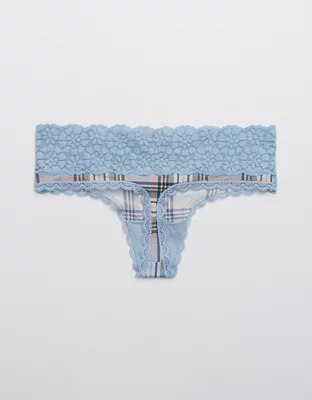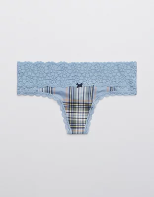 Aerie Sugar Cookie Lace Shine Thong Underwear