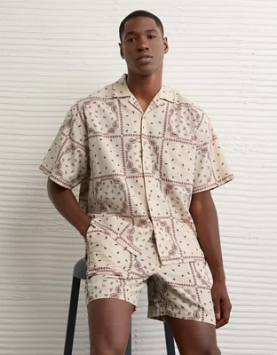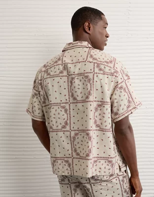 AE Poolside Linen-Blend Printed Button-Up Shirt