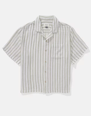 AE Poolside Linen-Blend Striped Button-Up Shirt