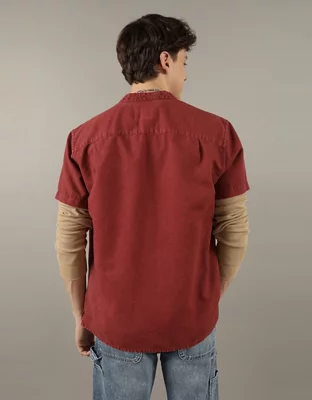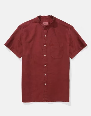 AE Short-Sleeve Band Collar Linen Button-Up Shirt