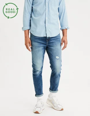 • Men's jeans and pants sizes are formatted as "Waist X Length" in inches.