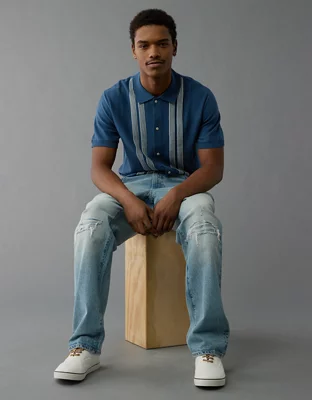 AE Weekend Button-Up Striped Sweater Polo Shirt