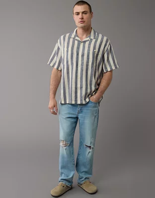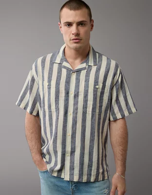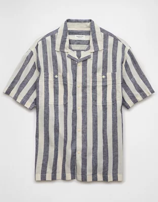 AE Poolside Linen-Blend Striped Button-Up Shirt