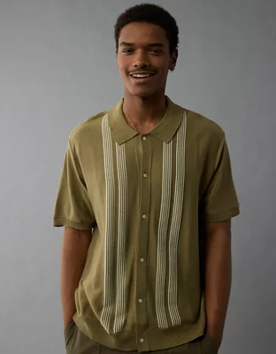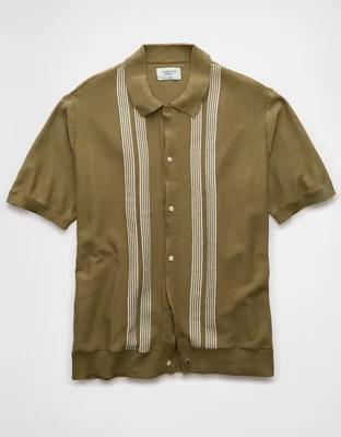 AE Weekend Button-Up Striped Sweater Polo Shirt