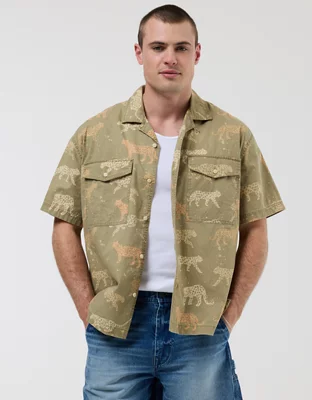 AE Poolside Linen-Blend Striped Button-Up Shirt